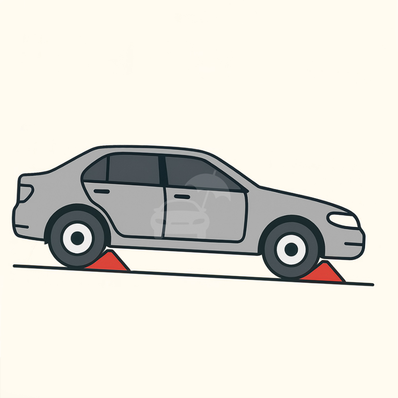 - Устанавливайте под правильным углом и вплотную к колесу. Башмак должен упираться в шину снизу, надёжно блокируя движение автомобиля;